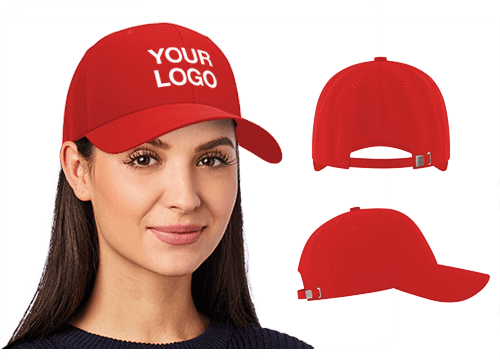 The 100% cotton material, adjustable metal buckle strap, and ventilation eyelets mean your clients and staff will be thankful for the comfortable and cool fit while representing your brand.