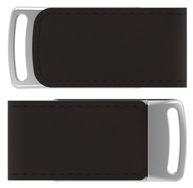 The USB connector is protected when not in use via the leather exterior, which can be opened and closed via the magnetic clasp.