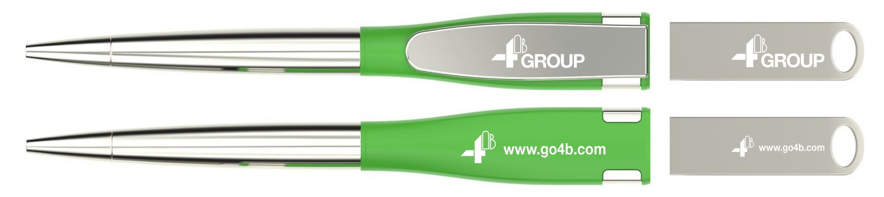 The 4 branding areas are visible on the body of the ballpoint pen and the detachable USB drive to keep your logo visible at all times.