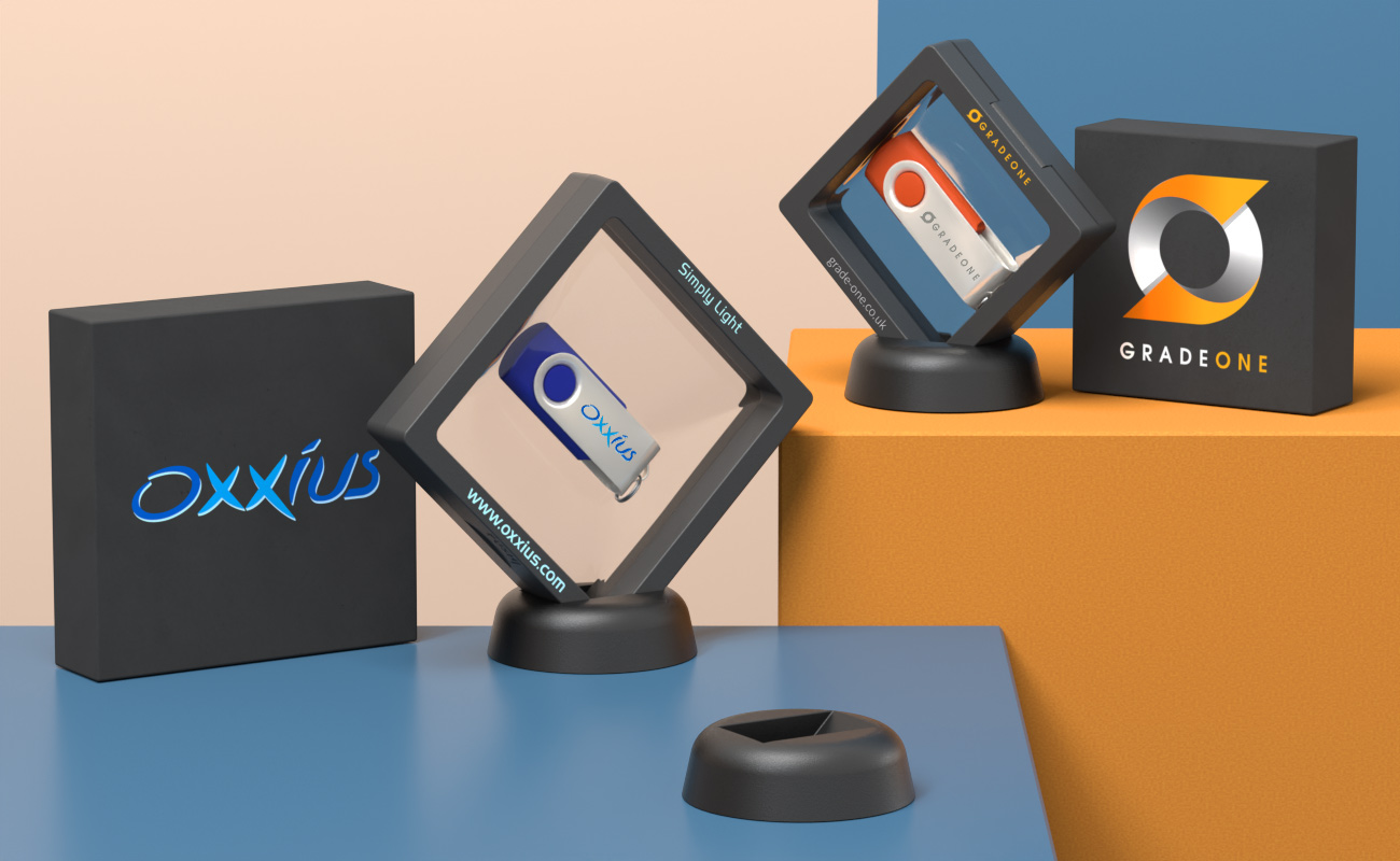 Our Snap Frame Small accessory is an eye-catching way to present and give away your custom branded promotional products. You can open and close the box via the secure clip. The transparent plastic film holds the product in place, and the cardboard outer-edges can be branded with your logo and more. The Snap Frame Small comes in a cardboard box sleeve that can also be branded with your logo.View Image Gallery