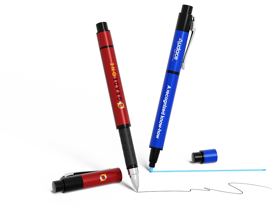 The Accent features a smooth ballpoint pen and handy highlighter in one fantastic model. We can add your logo to both sides of the body, and also on the cap. The Accent also boasts a handy clip and comfortable grip - ensuring it'll be used daily, giving your brand maximum exposure.