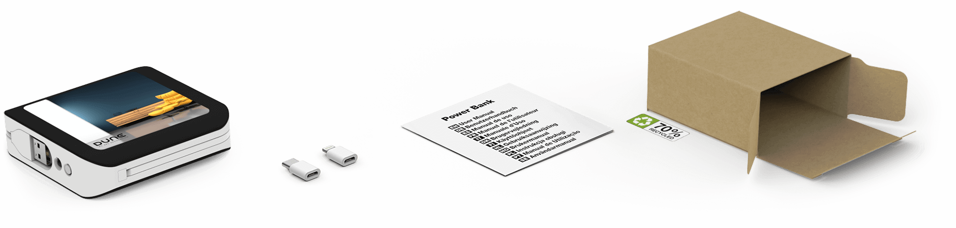 We offer a range of battery capacities, from 4400mAh to 10050mAh. Plus, the device comes with lightning and USB-C adapters, providing multiple charges for iPhones, Samsungs, and even Kindles. This means your recipients can stay powered up on the go, whether it’s for work or play. It also features a charging progress light, a built-in LED torch, and a retractable charging cable for convenience and ease of use. Contact us here for more information.