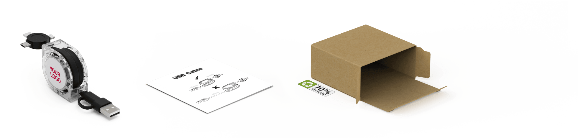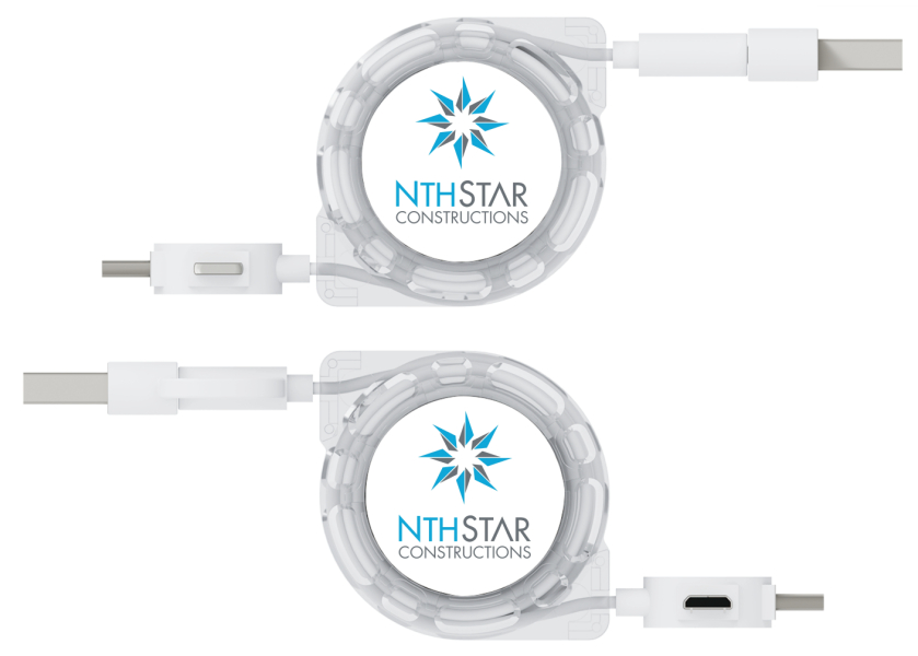 The Motion USB Cable features an enlarged branding area on both sides, ready to be Photo Printed with your image, logo, slogan, event details and more. The Motion supports data transfer and charging capabilities and is compatible with all major devices due to the 4 connector options, including a standard USB connector, Micro-USB, USB-C and a Lightning Adapter. You can seamlessly extend and retract the cables by pulling both cable ends at the same time. For a wooden touch, check out our model.